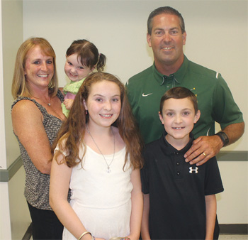 Chris Warren with his wife, Leah, and their children, Brenna, Brooke, and Brady pictured at the Classical softball banquet.